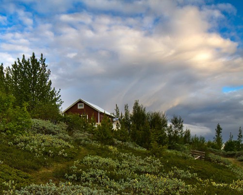 Cozy 32 fm summerhouse in the Geysir area, only 1 km in air line. One bedroom for 2 persons and attic wich is open into the livingroom for 2 pers. Great view over the Geysir area and the mountains around.